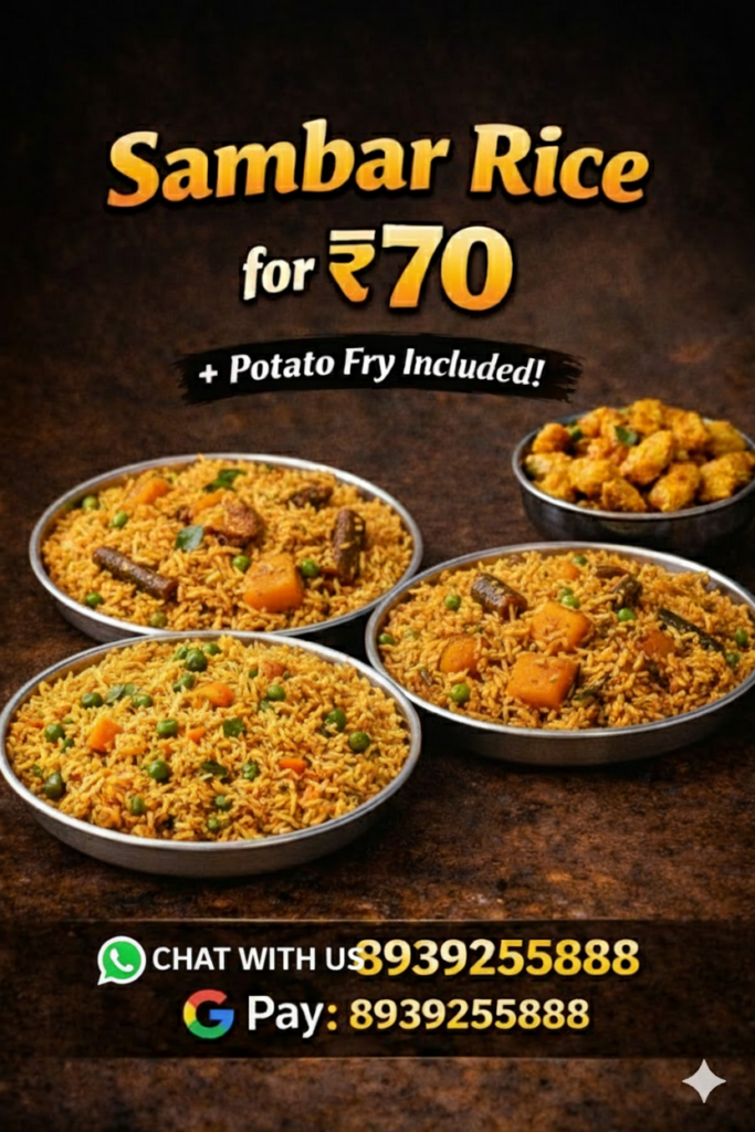 White rice, Sambar, Kaara kozhambhu, Moor, Rasam, Poriyal, Kootu, Oorugai, Appalam, Sweet, Vazha ilai, 500ml Water Bottle